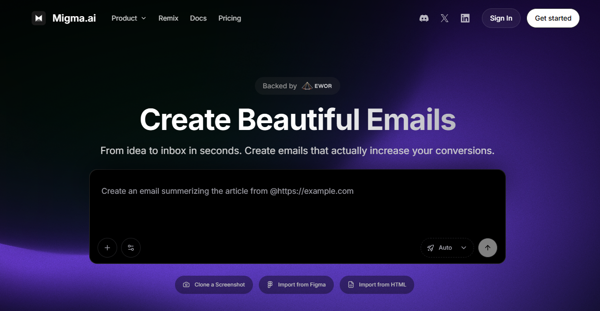 - Migma AI streamlines email creation, turning simple text prompts into complete, on-brand emails.