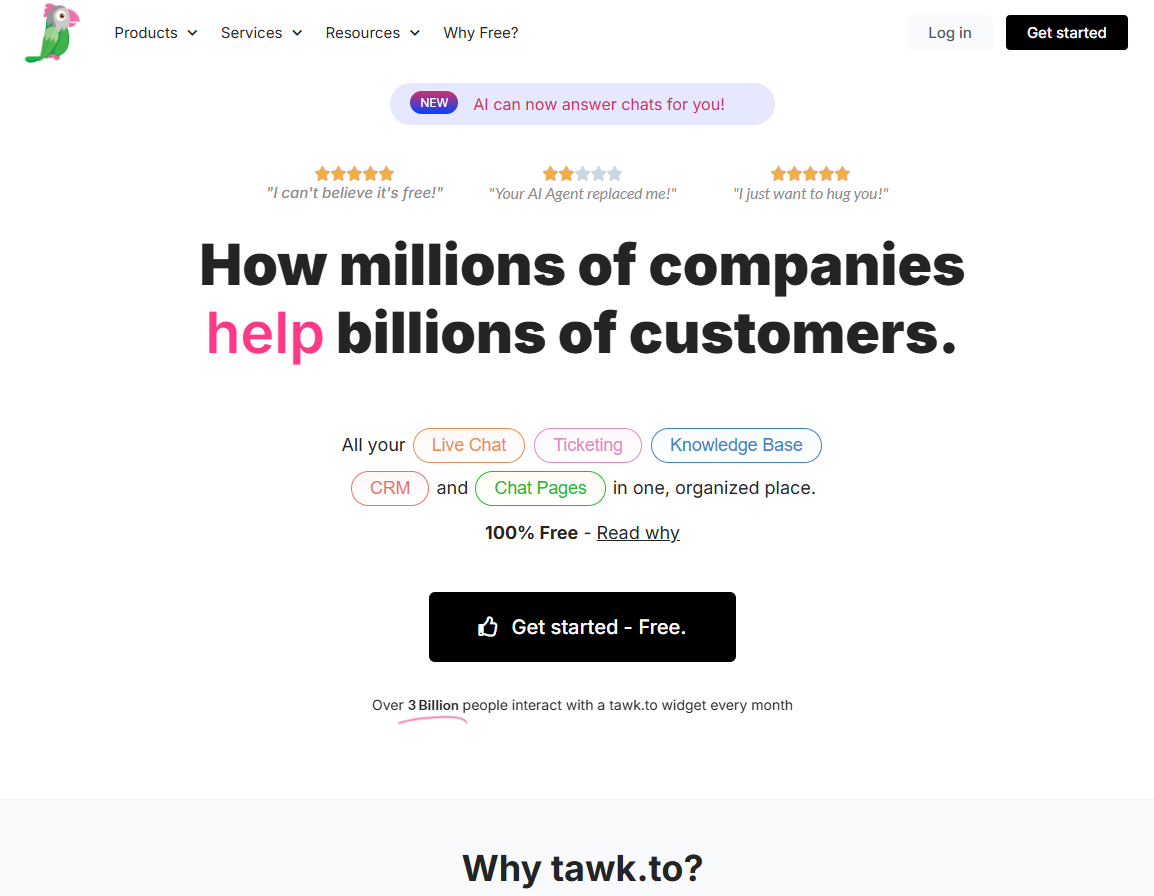 - Tawk.to offers a completely free plan for its core live chat platform, making it accessible for any business.