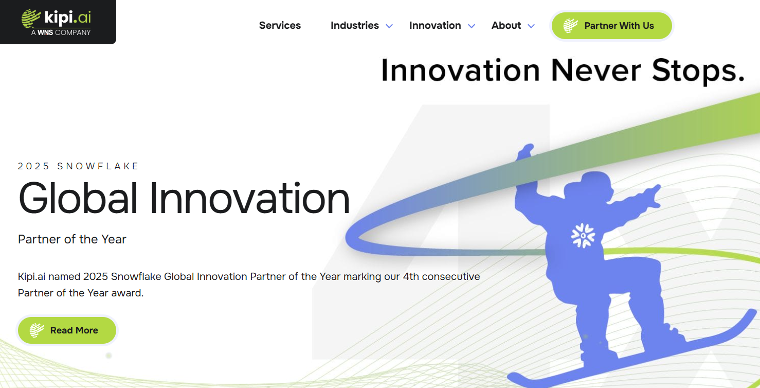 Strategic acquisitions are crucial for expanding capabilities, and the WNS milestone is a significant development for Kipi.ai. In 2023, WNS, a leading global Business Process Management (BPM) company, acquired Kipi.ai to enhance its data and analytics offerings. This move combines WNS’s industry-specific expertise with Kipi.ai’s deep knowledge of the Snowflake platform. [1]