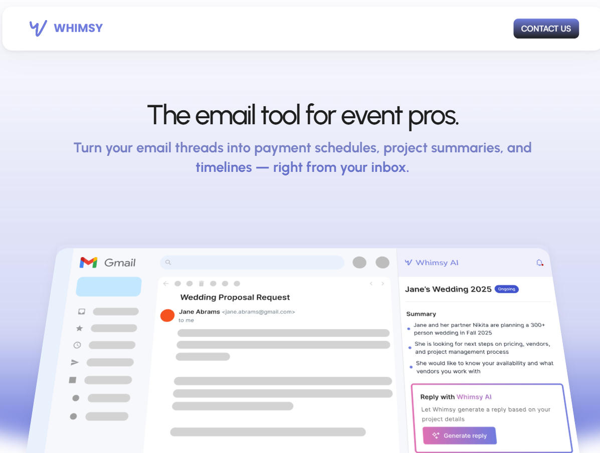 One event planning company shared how they use Whimsey AI to manage vendor communications and client bookings simultaneously. By setting up rules to handle RFPs and create project timelines from email threads, they cut their administrative work in half. This allowed them to take on more clients without hiring additional staff.
